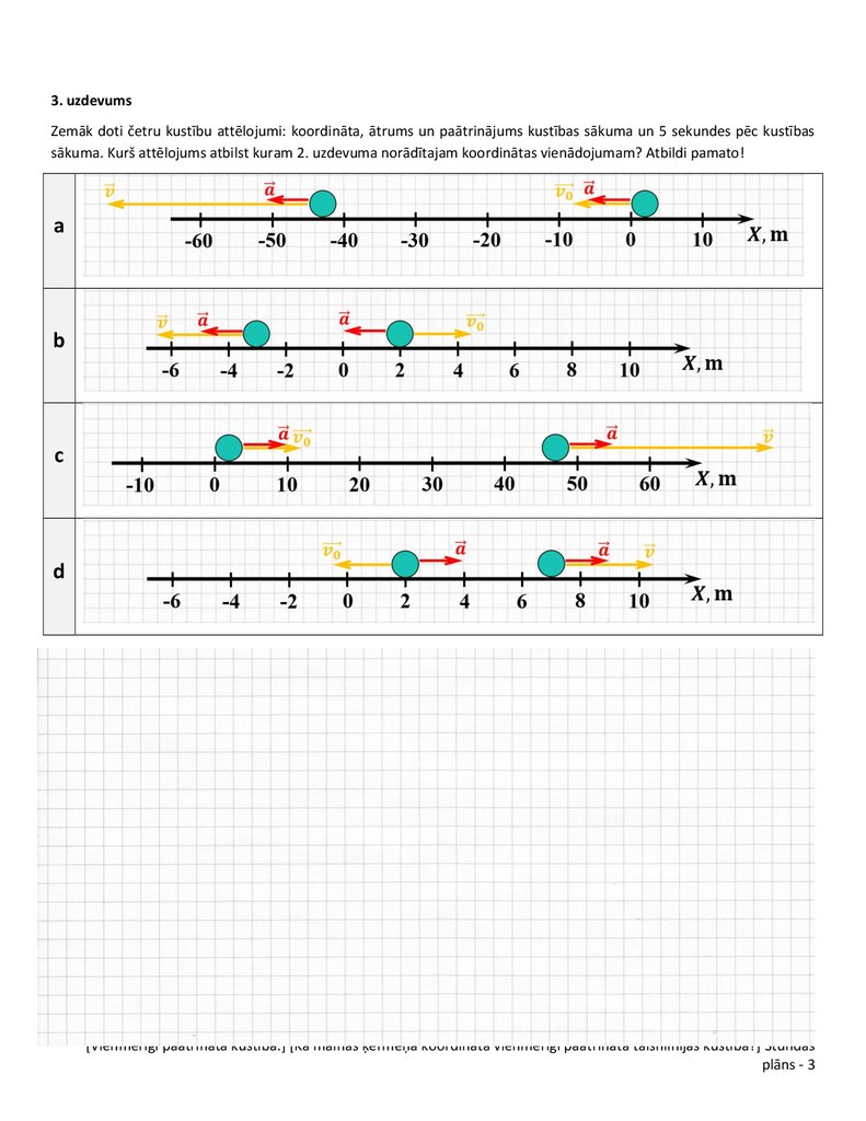 3. uzdevumsZemāk doti četru kustību attēlojumi: koordināta, ātrums un paātrinājums kustības sākuma un 5 sekundes pēc kustības