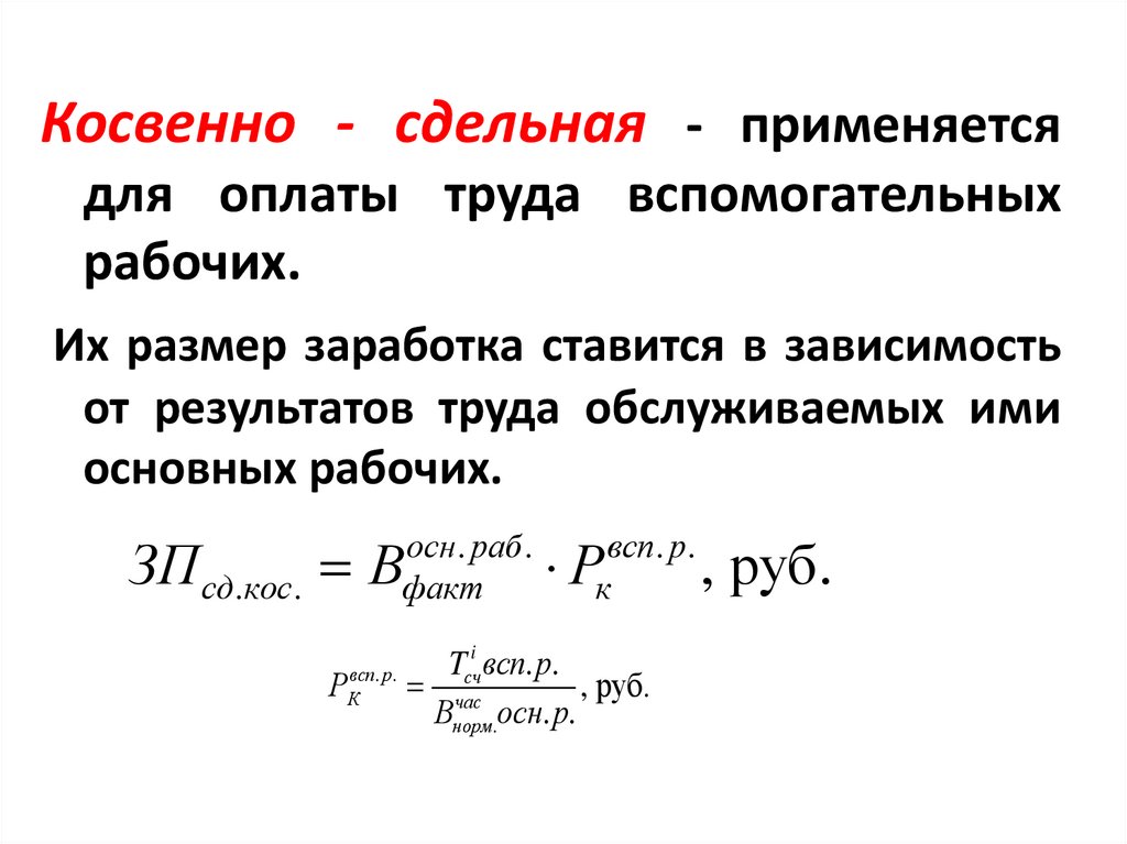 Косвенно - сдельная - применяетсядля оплаты труда вспомогательных