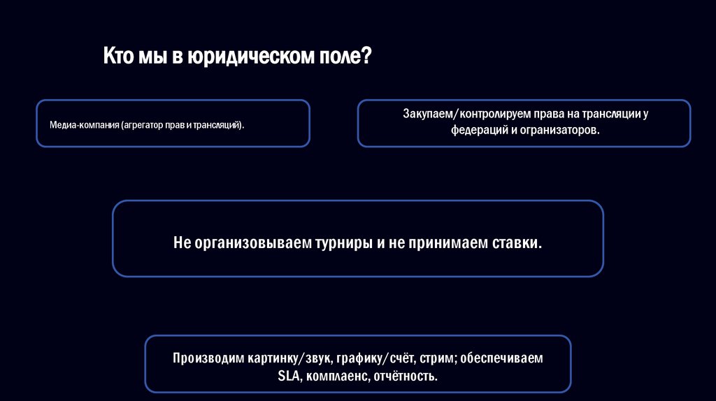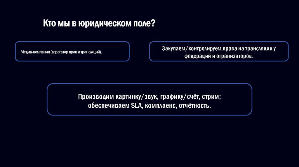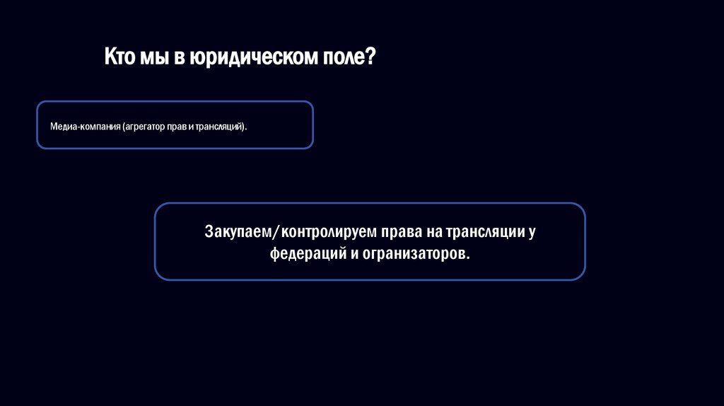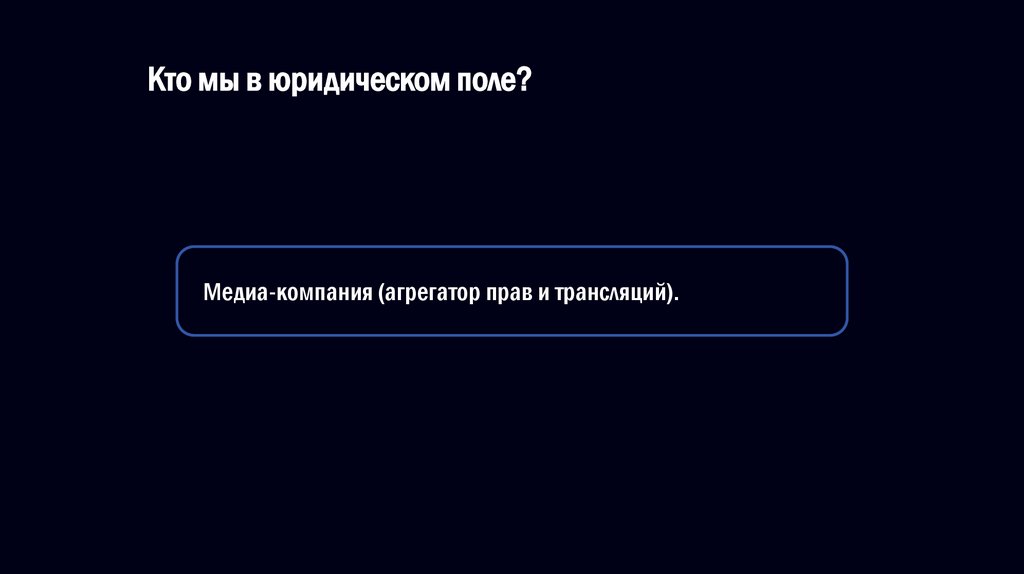 Кто мы в юридическом поле?Медиа-компания (агрегатор прав и трансляций).