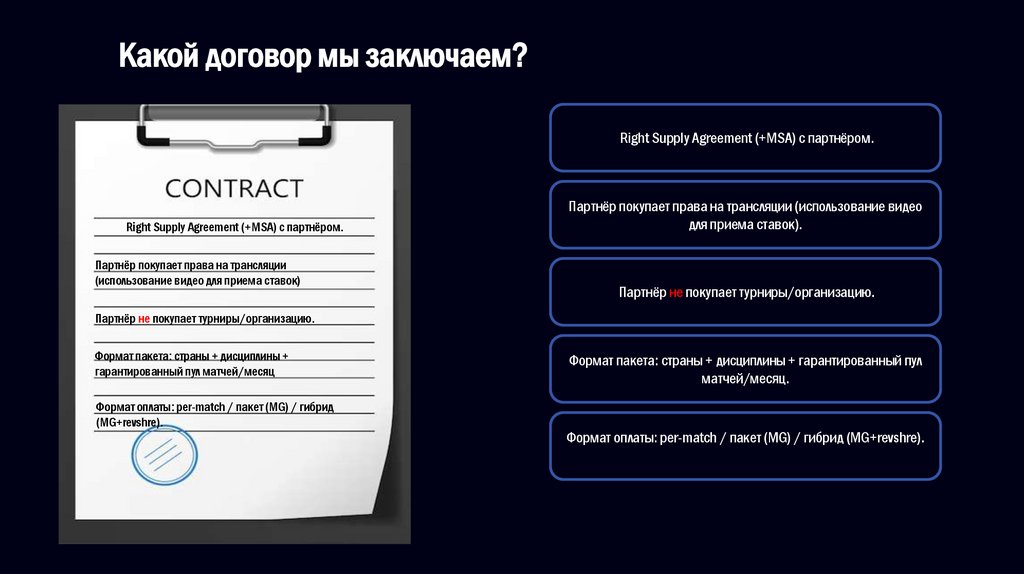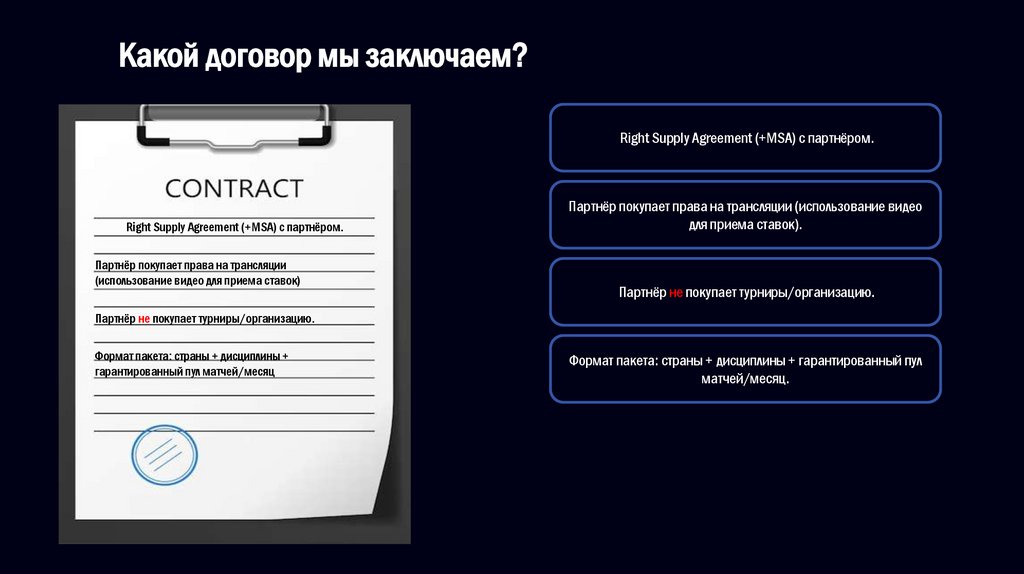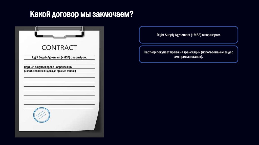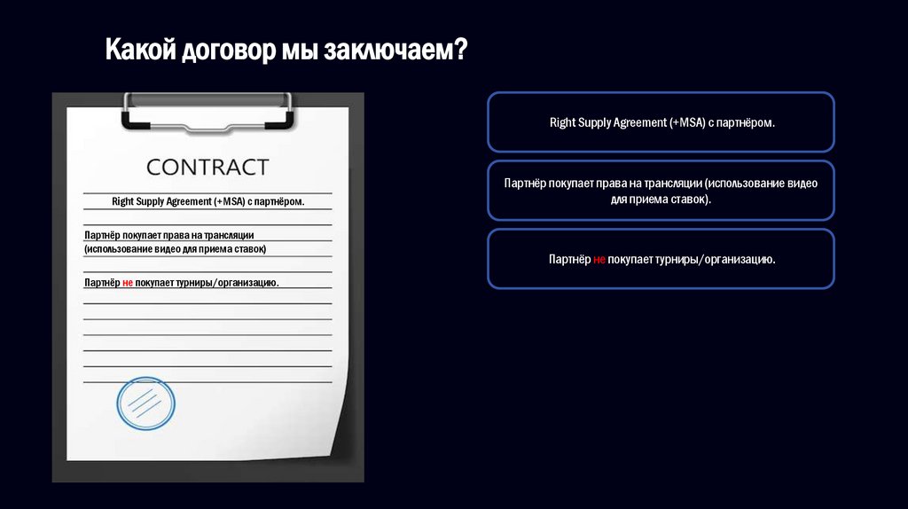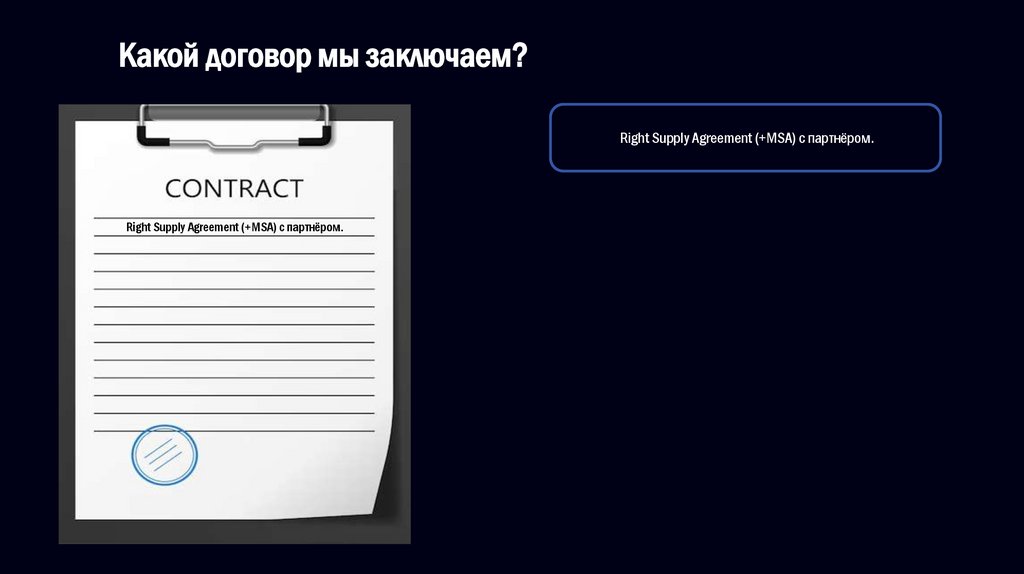 Какой договор мы заключаем?Right Supply Agreement (+MSA) с партнёром.