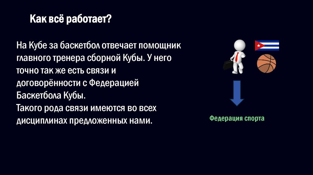 Как всё работает?На Кубе за баскетбол отвечает помощник
