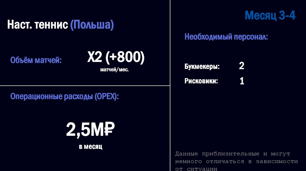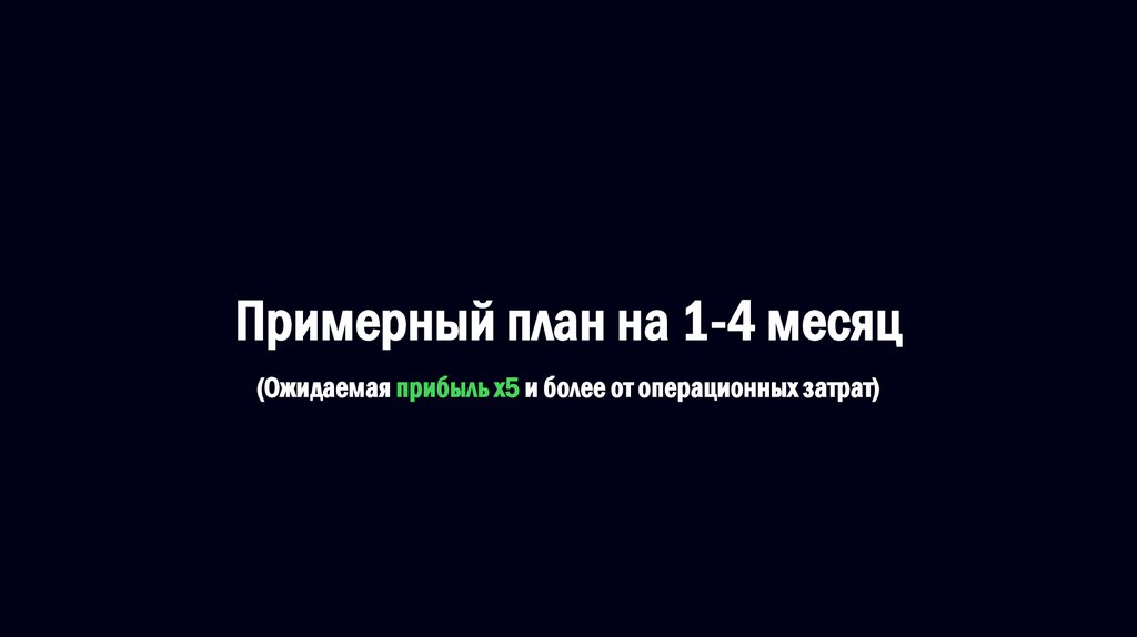 Примерный план на 1-4 месяц(Ожидаемая прибыль х5 и более от операционных затрат)