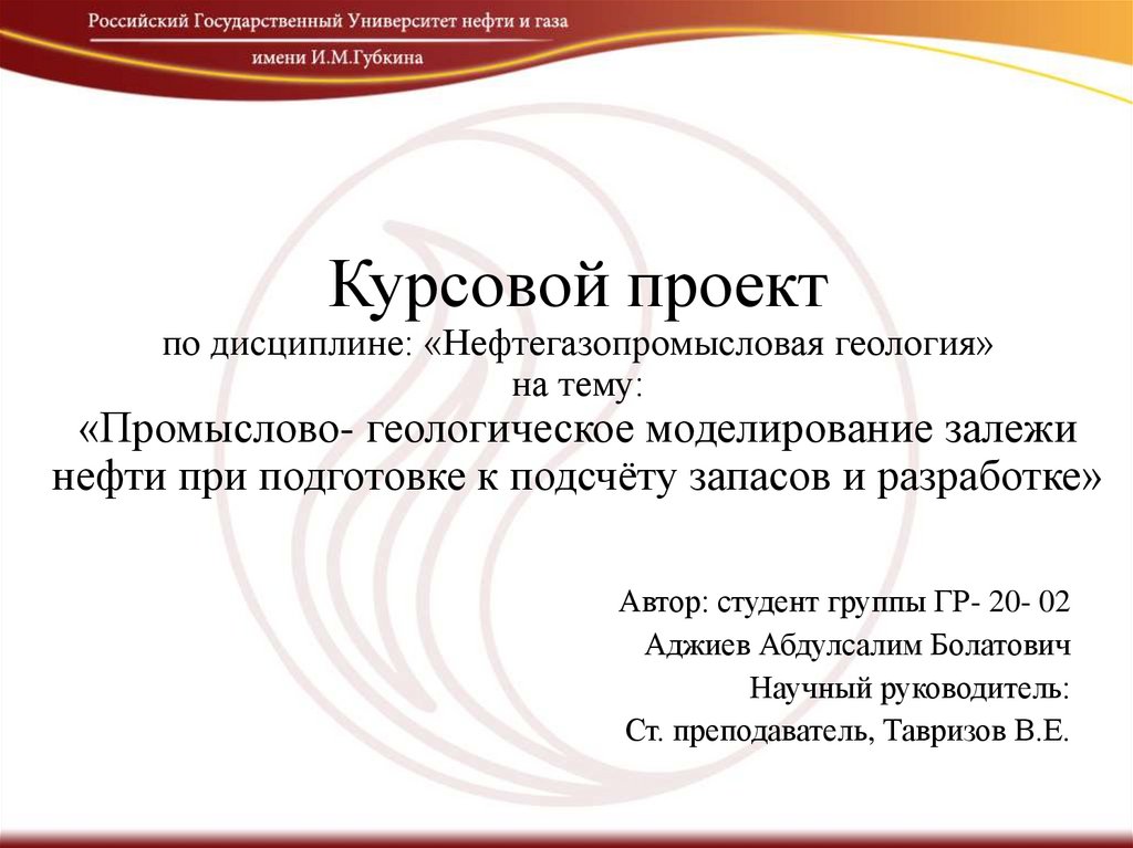 Курсовой проектпо дисциплине: «Нефтегазопромысловая геология»