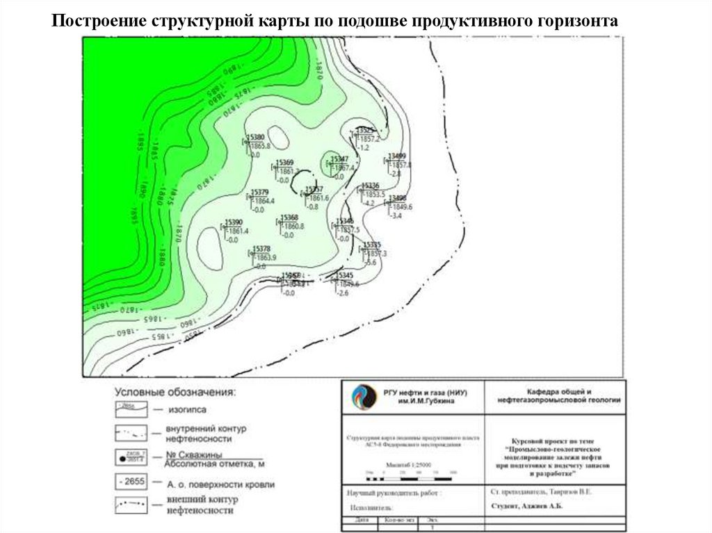 ▪ Построение структурных карт кровли и подошвы продуктивного пласта, карты общих, эффективных и