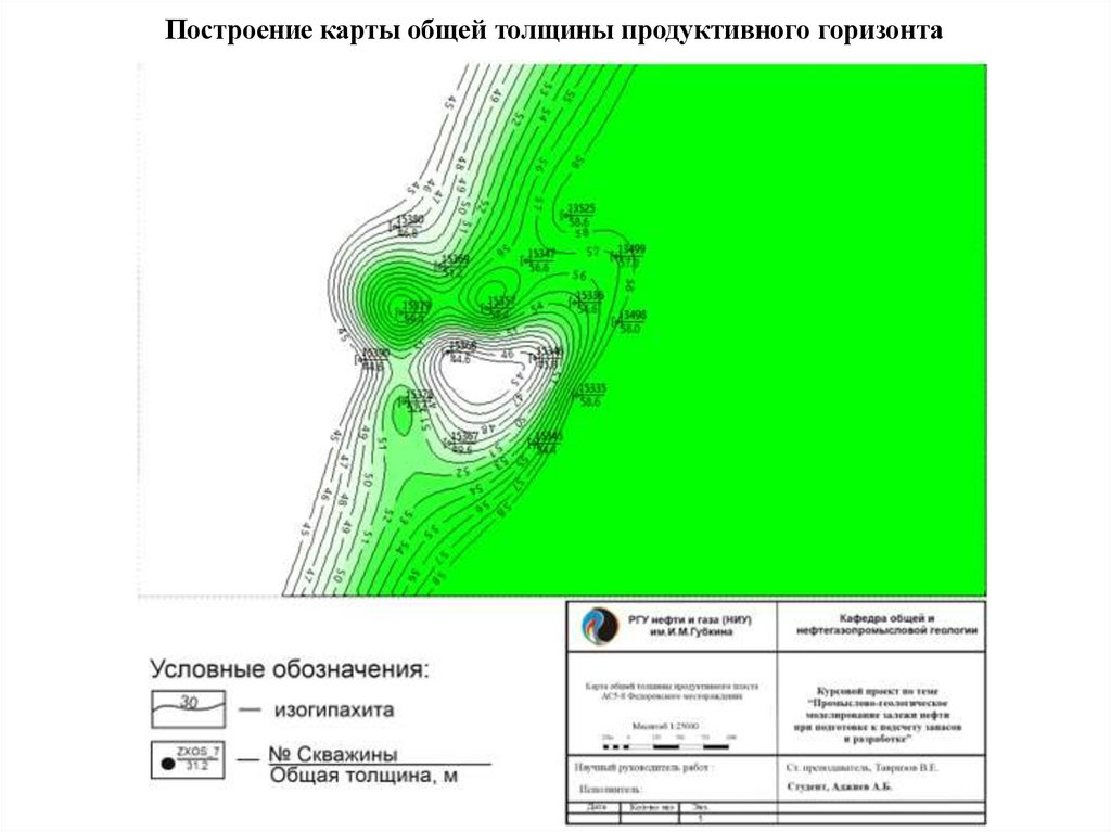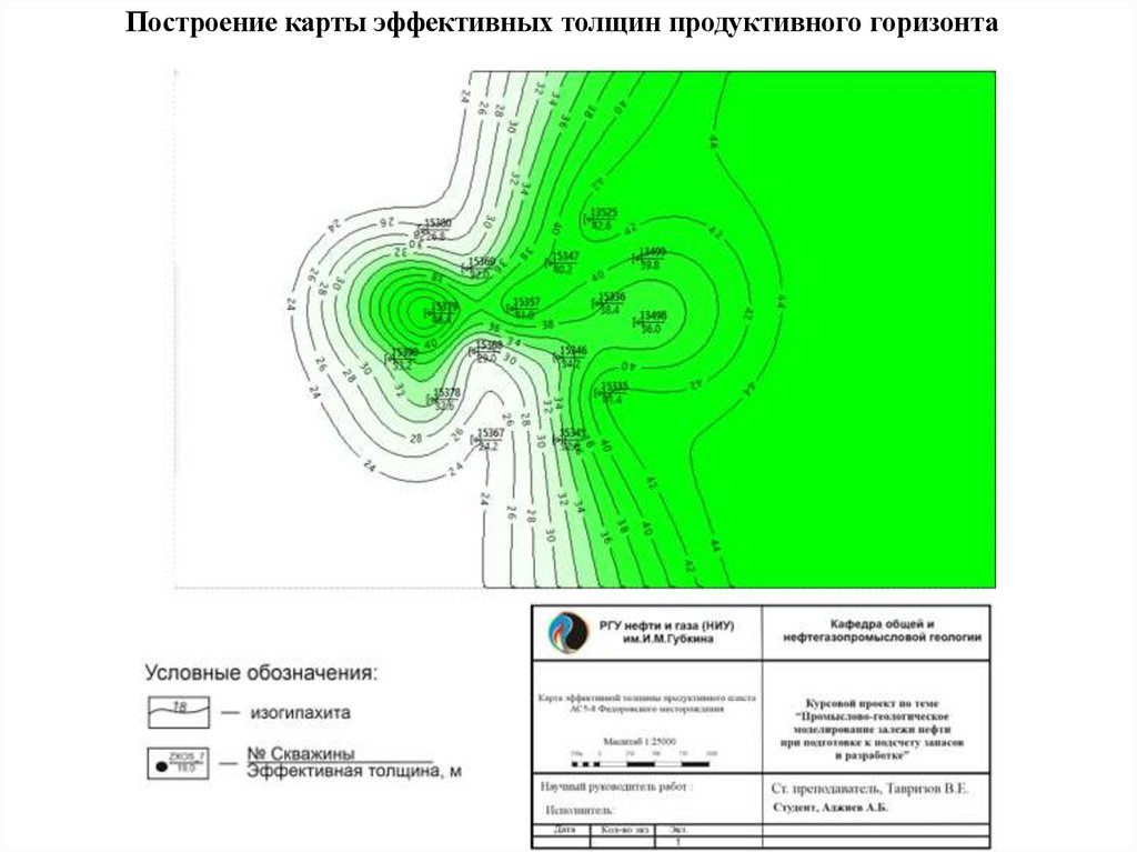 пласта, карты общих, эффективных и эффективных нефтенасыщенных толщин