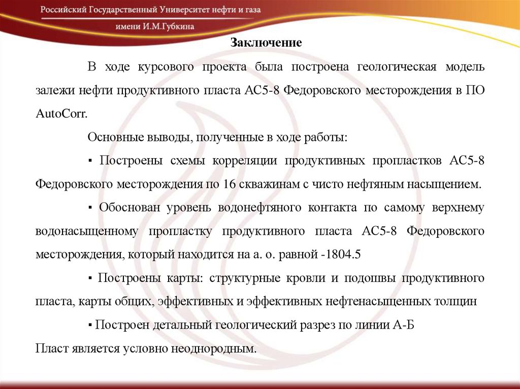 ЗаключениеВ ходе курсового проекта была построена геологическая модель