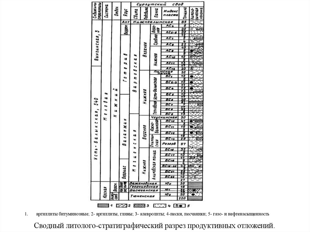 Сводный литолого-стратиграфический разрез продуктивных отложений.