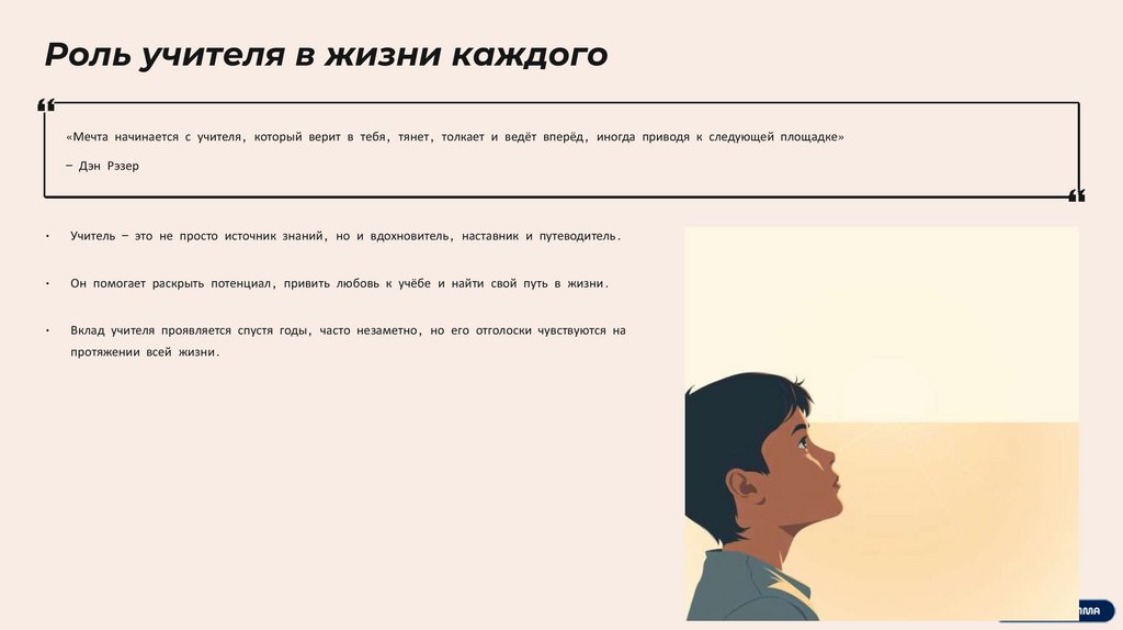 Учитель — это не просто источник знаний, но и вдохновитель, наставник и путеводитель.