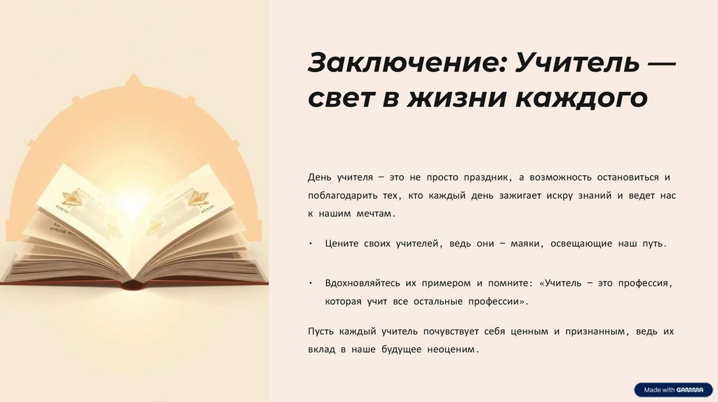 Заключение: Учитель —свет в жизни каждого