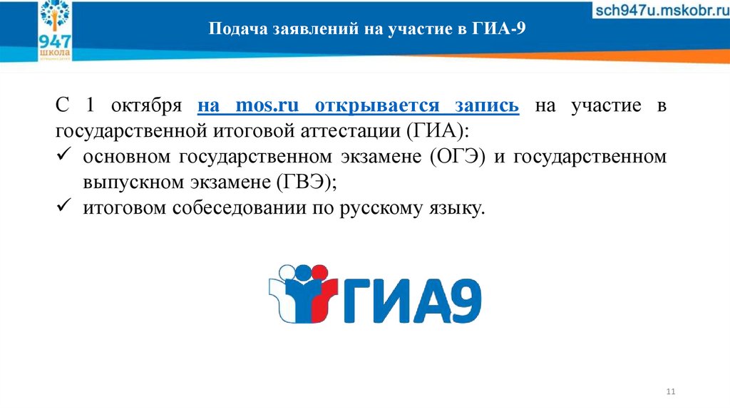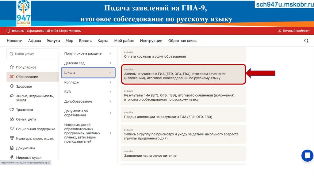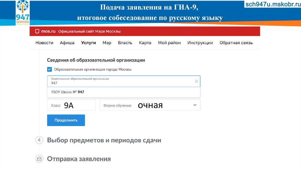 − Инструкция по подаче заявления для участия в ГИА-9 в форме ОГЭ и/или ГВЭ на официальном портале Мэра и