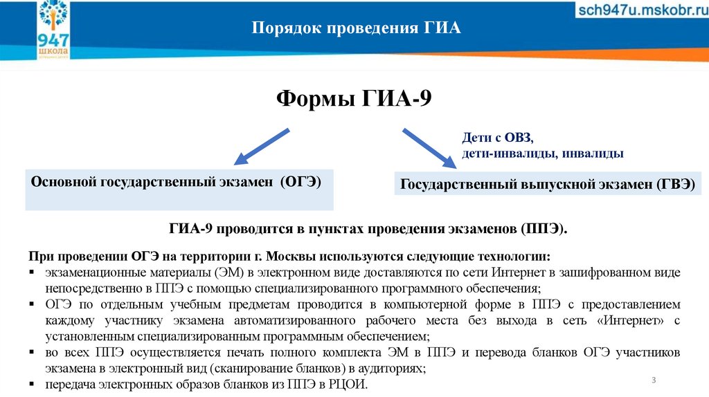 ГИА-9 проводится в пунктах проведения экзаменов (ППЭ).