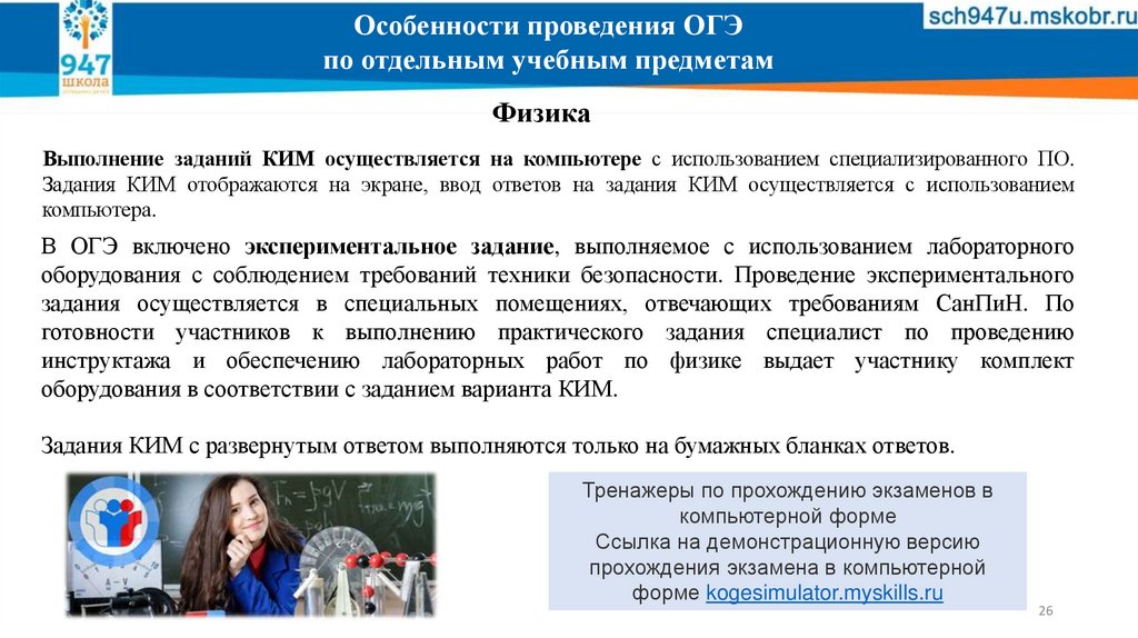 ОГЭ по отдельным учебным предметам проводится в компьютерной форме в ППЭ с предоставлением