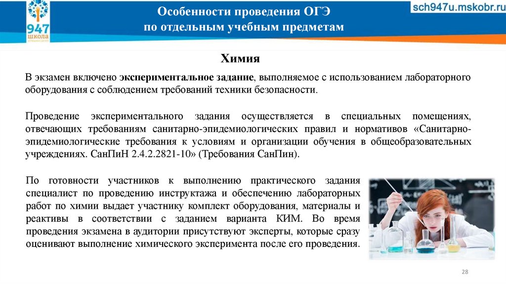 реактивы в соответствии с заданием варианта КИМ. Во время