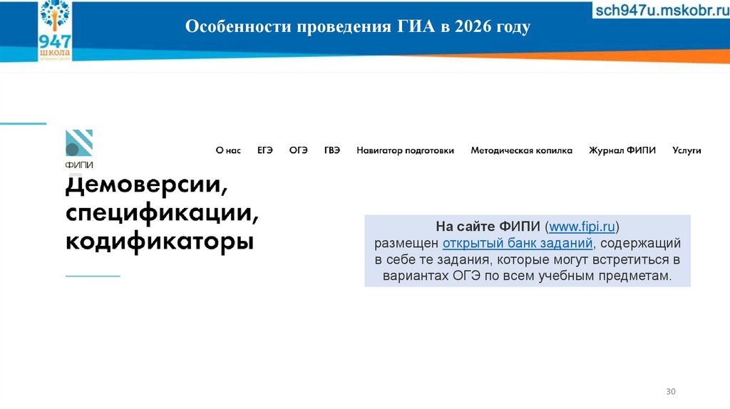 Особенности проведения ГИА в 2026 годуНа сайте ФИПИ (www.fipi.ru)