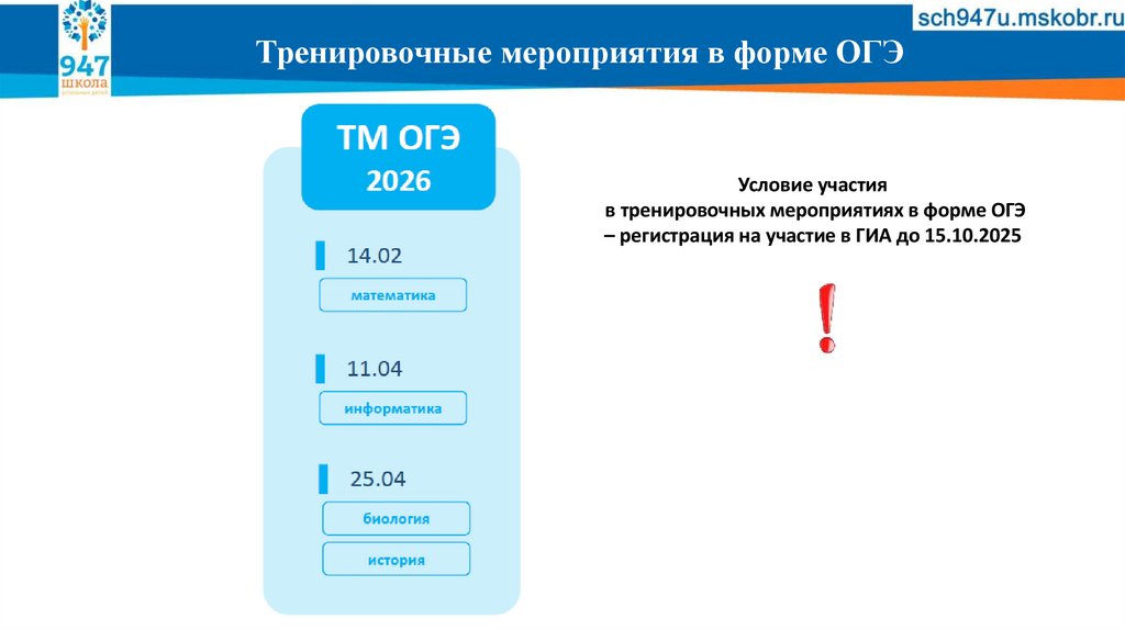 Тренировочные мероприятия в форме ОГЭУсловие участия
