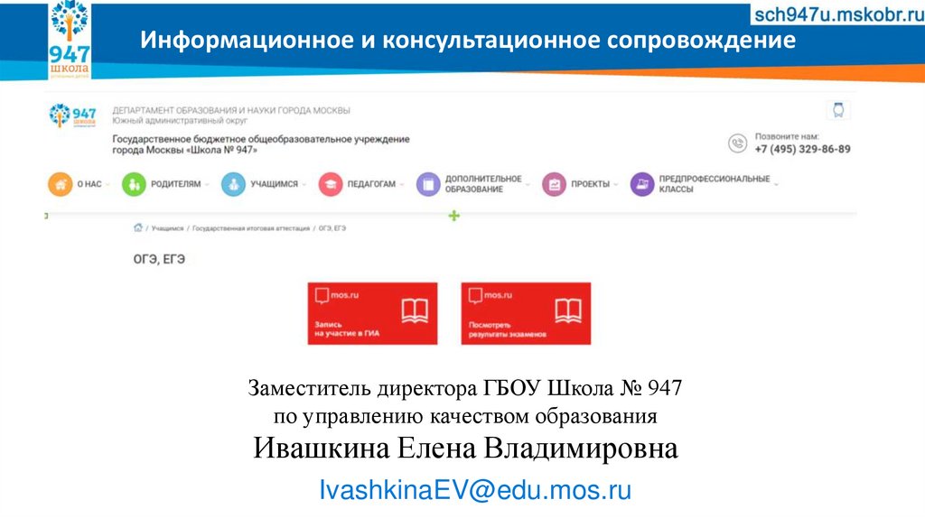 Информационное и консультационное сопровождениеЗаместитель директора ГБОУ Школа № 947