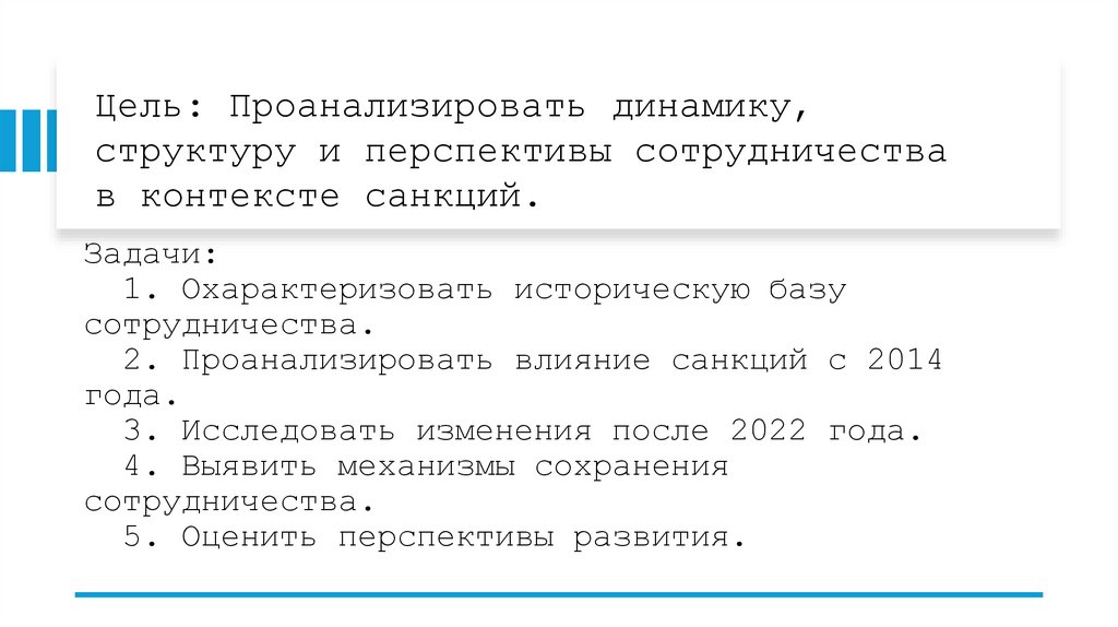 Цель: Проанализировать динамику,структуру и перспективы сотрудничества