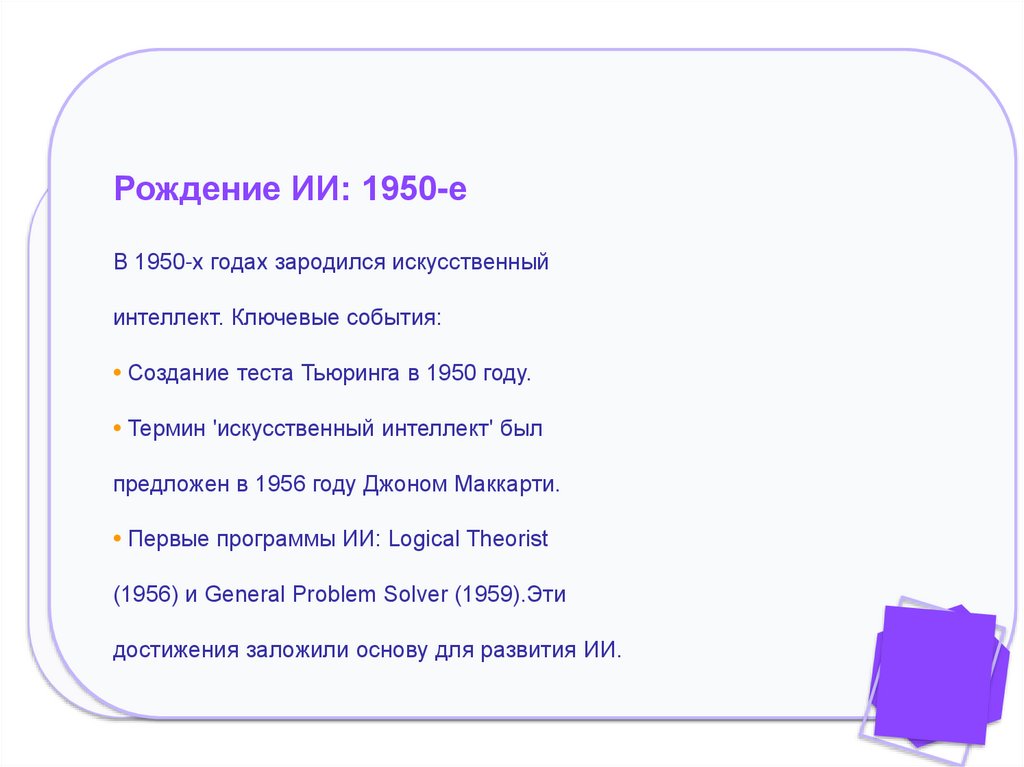 Рождение ИИ: 1950-еВ 1950-х годах зародился искусственный
