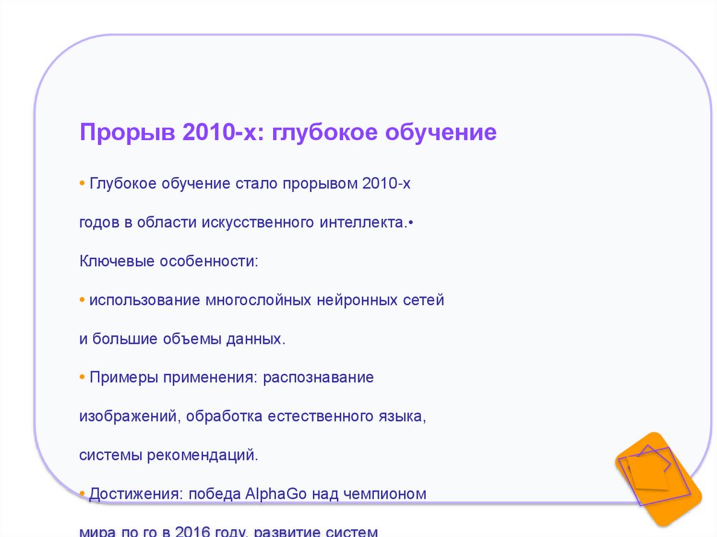 Прорыв 2010-х: глубокое обучение• Глубокое обучение стало прорывом 2010-х