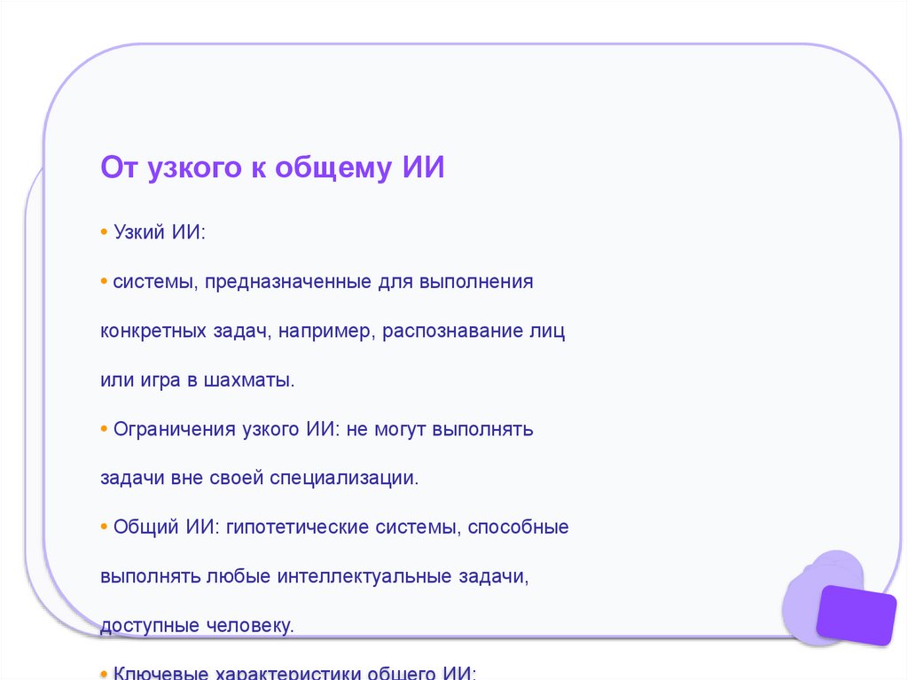• Ограничения узкого ИИ: не могут выполнять