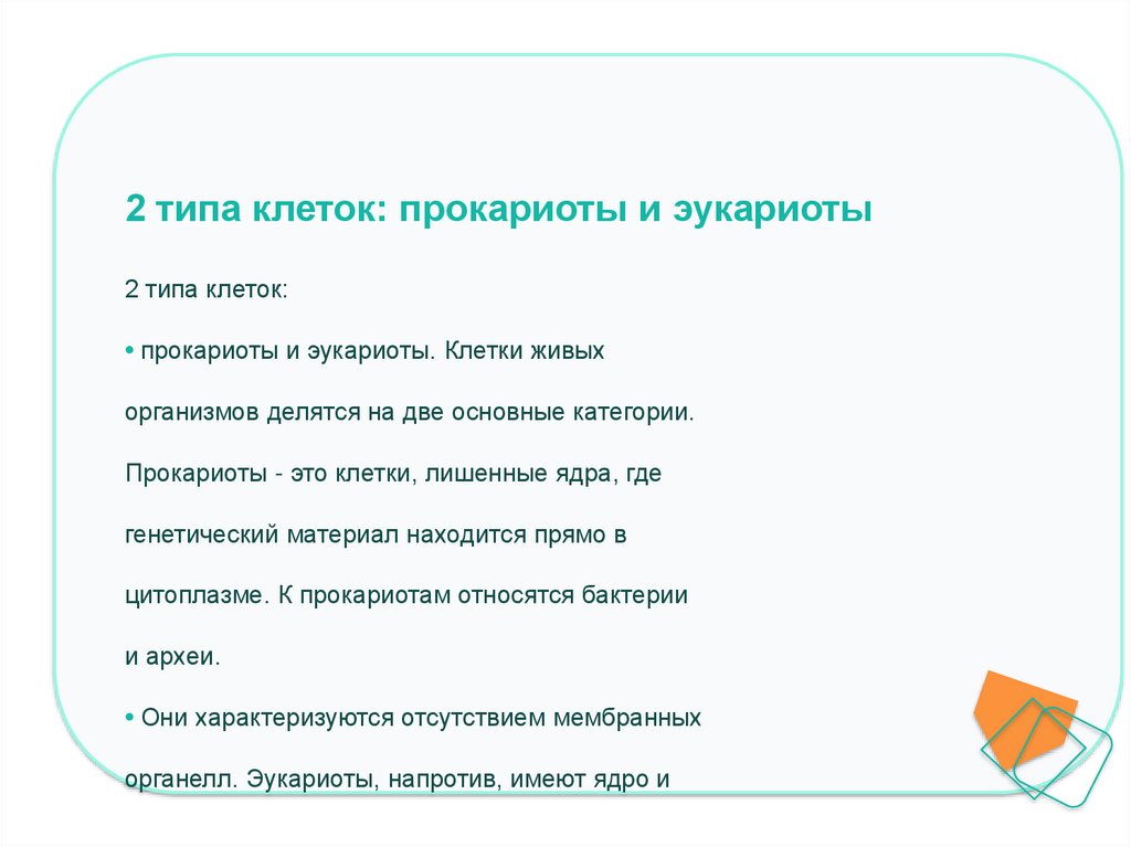 2 типа клеток: прокариоты и эукариоты2 типа клеток: