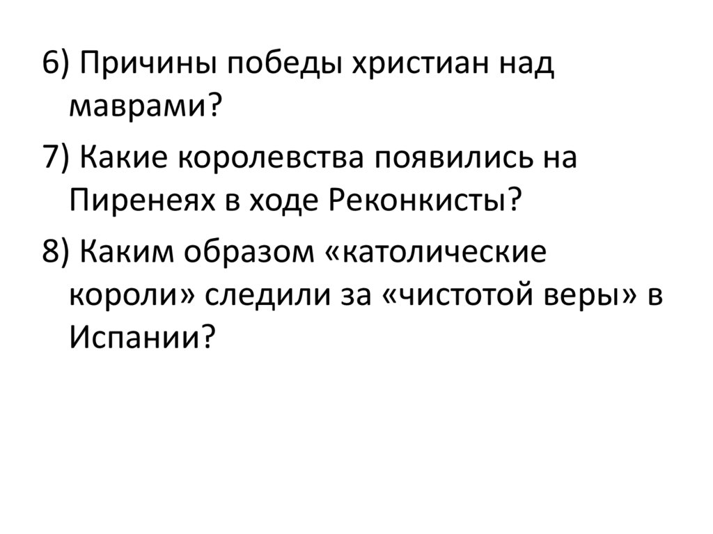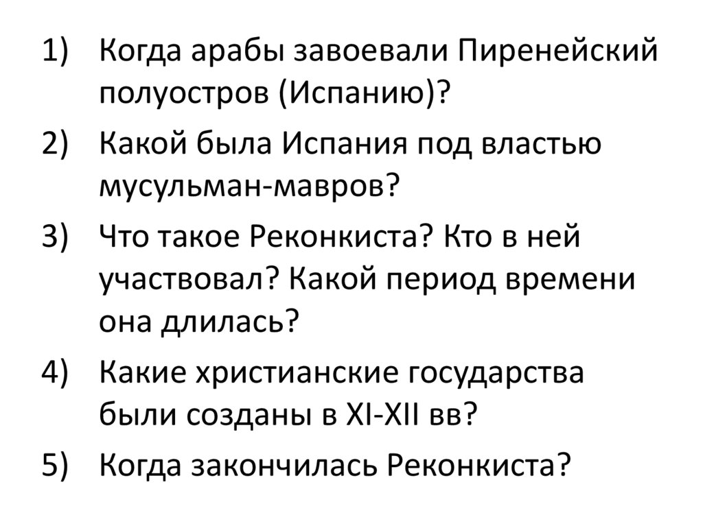 1) Когда арабы завоевали Пиренейскийполуостров (Испанию)?