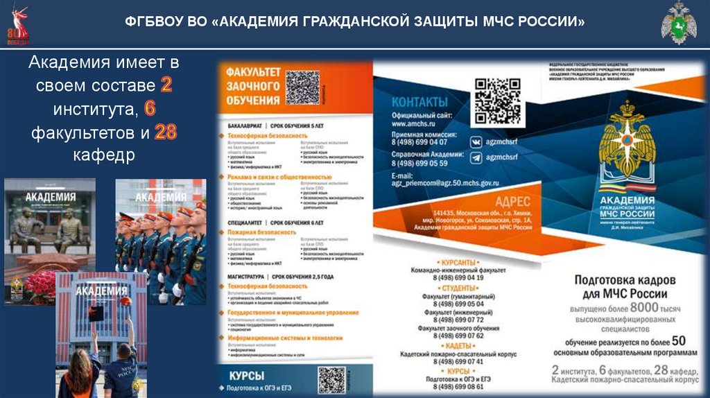 ФГБВОУ ВО «АКАДЕМИЯ ГРАЖДАНСКОЙ ЗАЩИТЫ МЧС РОССИИ»Академия имеет в