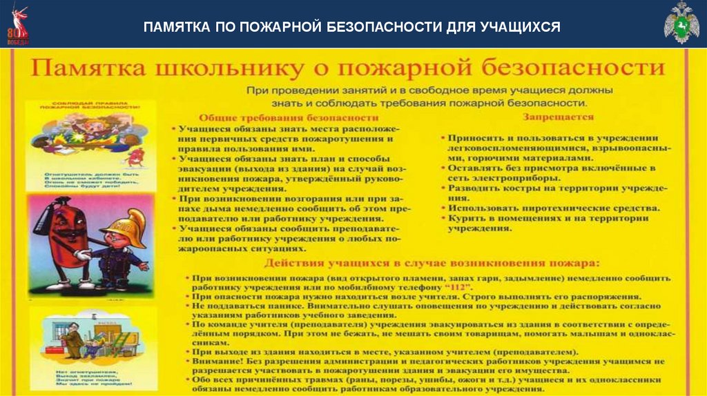 ПАМЯТКА ПО ПОЖАРНОЙ БЕЗОПАСНОСТИ ДЛЯ УЧАЩИХСЯ9.