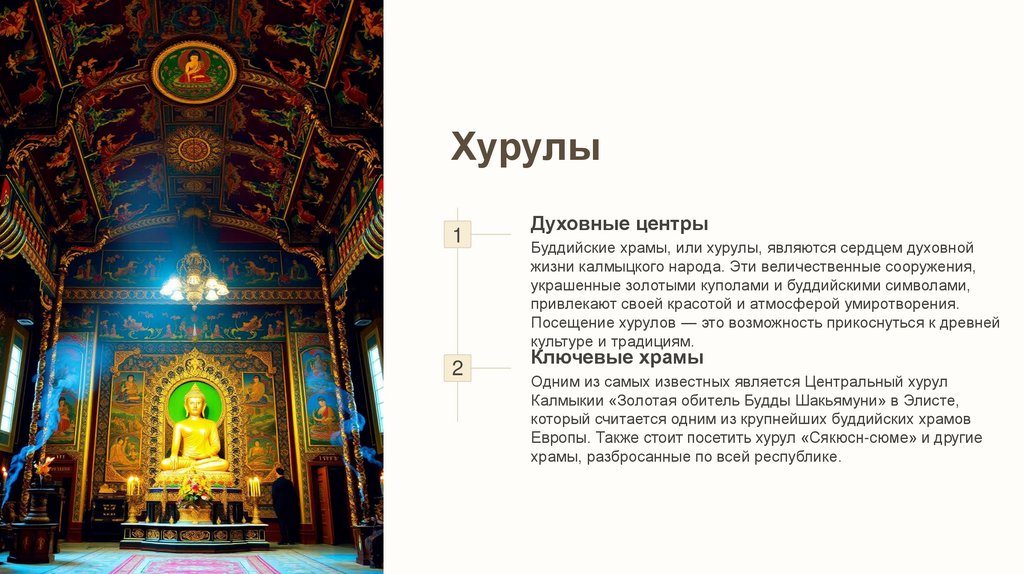 уникальный калмыцкий колорит. Особое внимание уделяется буддизму,