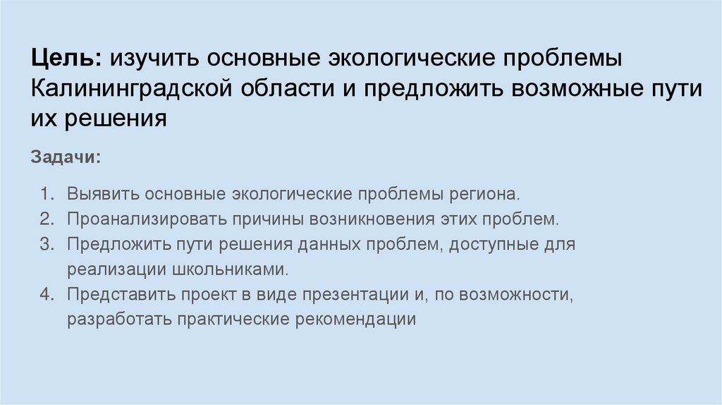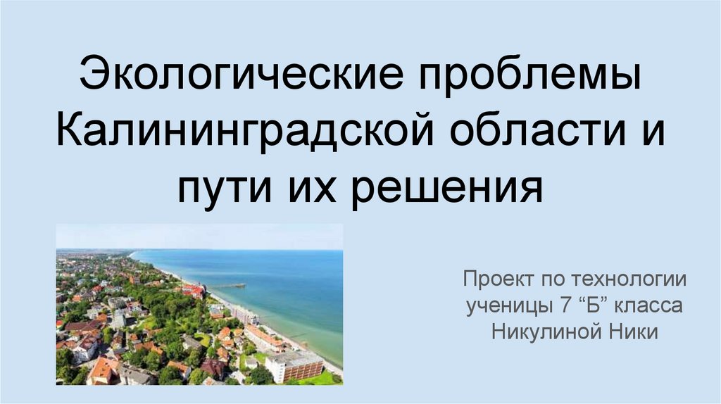 Цель: изучить основные экологические проблемыКалининградской области и предложить возможные пути