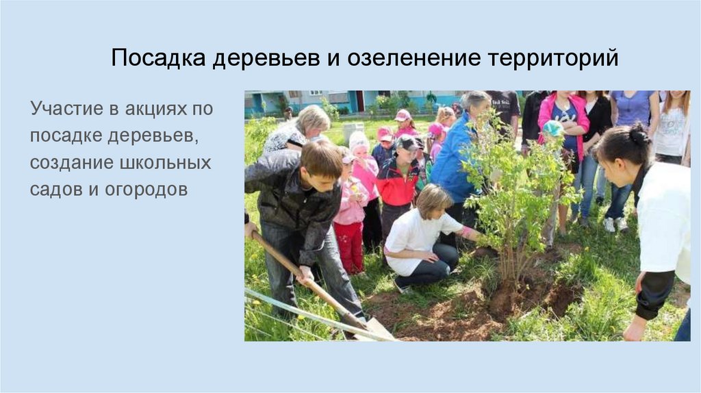 Посадка деревьев и озеленение территорийУчастие в акциях по