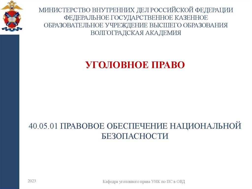 40.05.01 ПРАВОВОЕ ОБЕСПЕЧЕНИЕ НАЦИОНАЛЬНОЙ