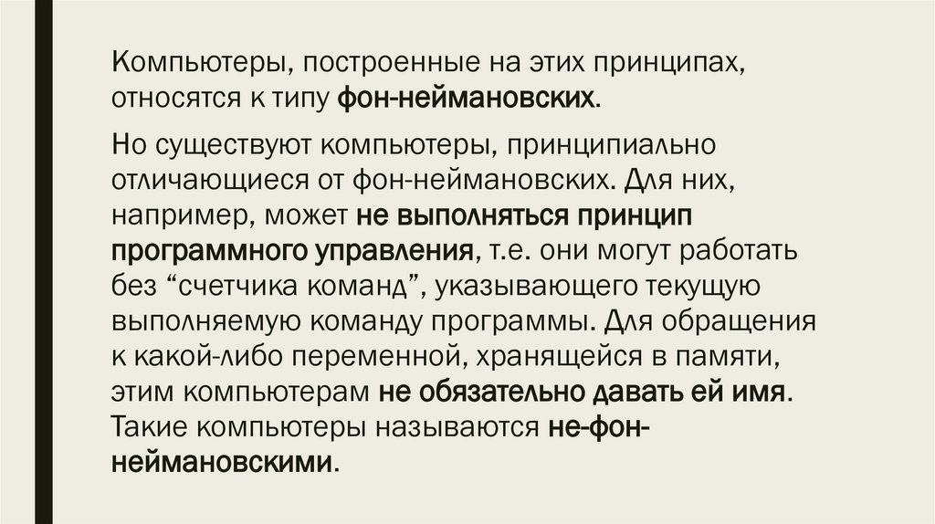 12. В основу построения подавляющего большинства компьютеров положены следующие общие принципы, сформулированные в 1945 г.