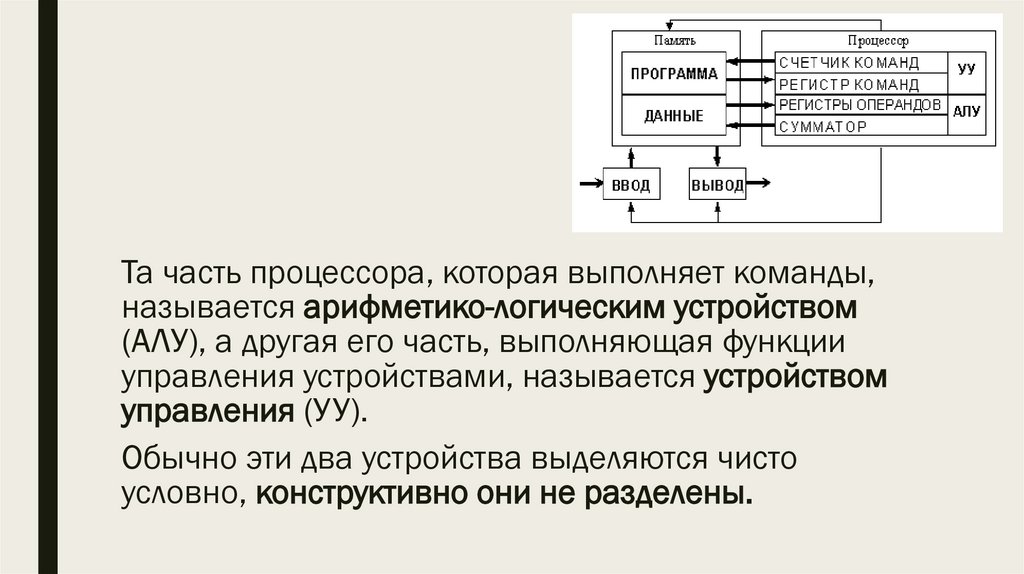 Та часть процессора, которая выполняет команды,называется арифметико-логическим устройством