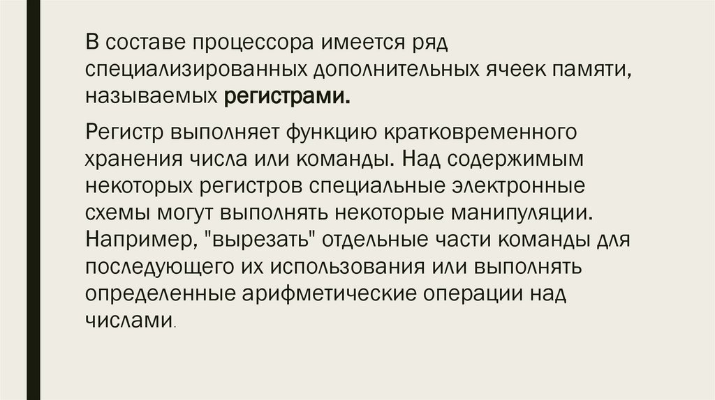 например:■ сумматор — регистр АЛУ, участвующий в выполнении каждой