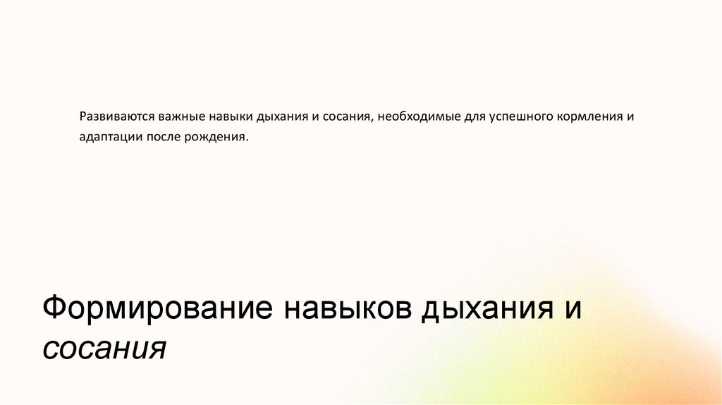Развиваются важные навыки дыхания и сосания, необходимые для успешного кормления иадаптации после рождения.