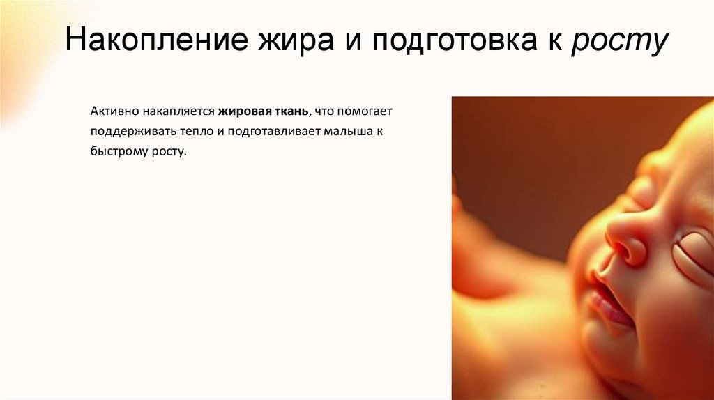 Накопление жира и подготовка к ростуАктивно накапляется жировая ткань, что помогает