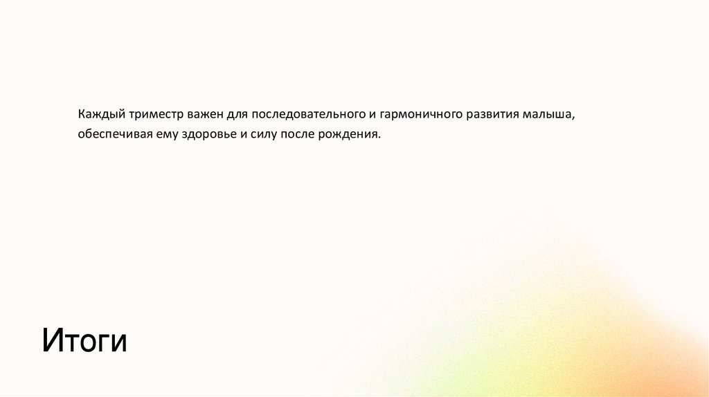 Каждый триместр важен для последовательного и гармоничного развития малыша,обеспечивая ему здоровье и силу после рождения.