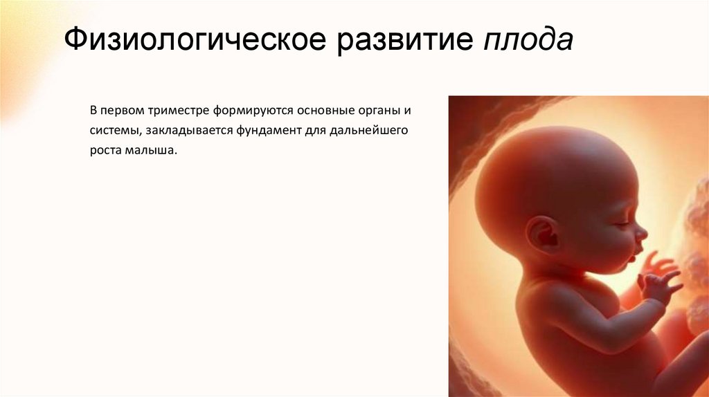 Физиологическое развитие плодаВ первом триместре формируются основные органы и