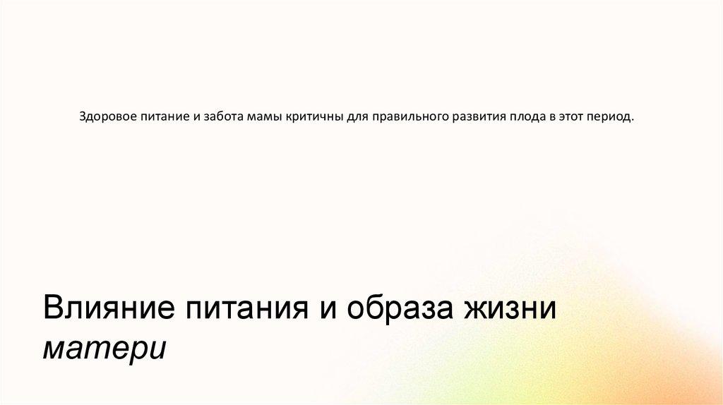 Здоровое питание и забота мамы критичны для правильного развития плода в этот период.Влияние питания и образа жизни