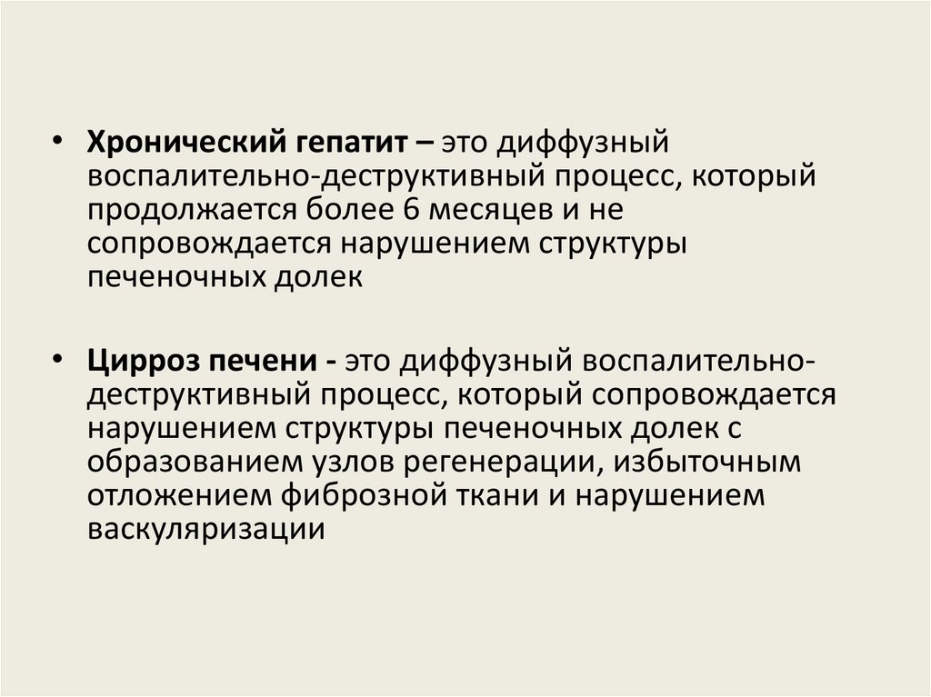 • Хронический гепатит – это диффузныйвоспалительно-деструктивный процесс, который