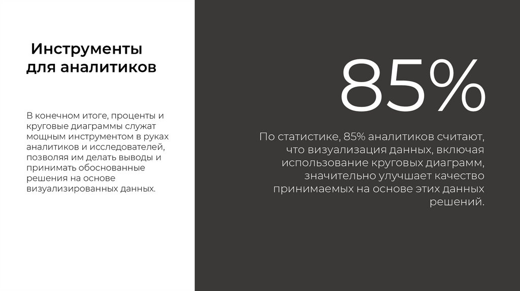 Для создания круговой диаграммы сначала необходимособрать данные и точно определить проценты для каждой
