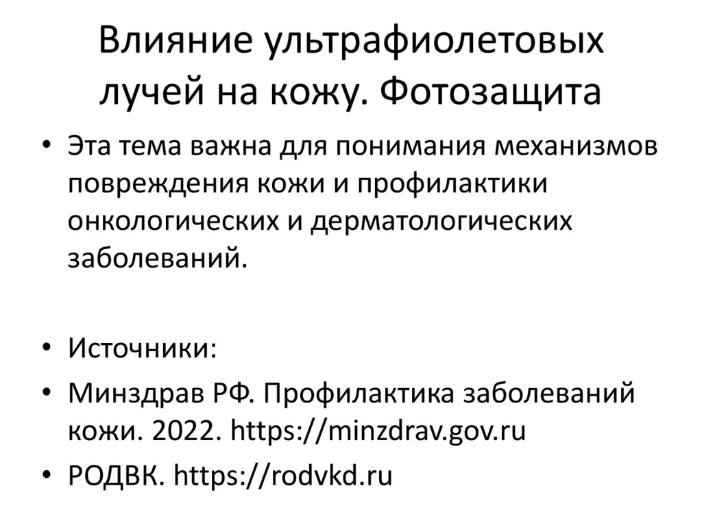 Влияние ультрафиолетовыхлучей на кожу. Фотозащита