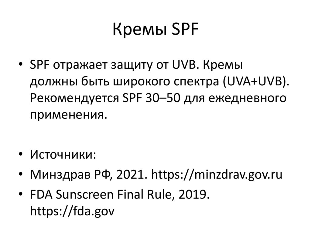 Кремы SPF• SPF отражает защиту от UVB. Кремы