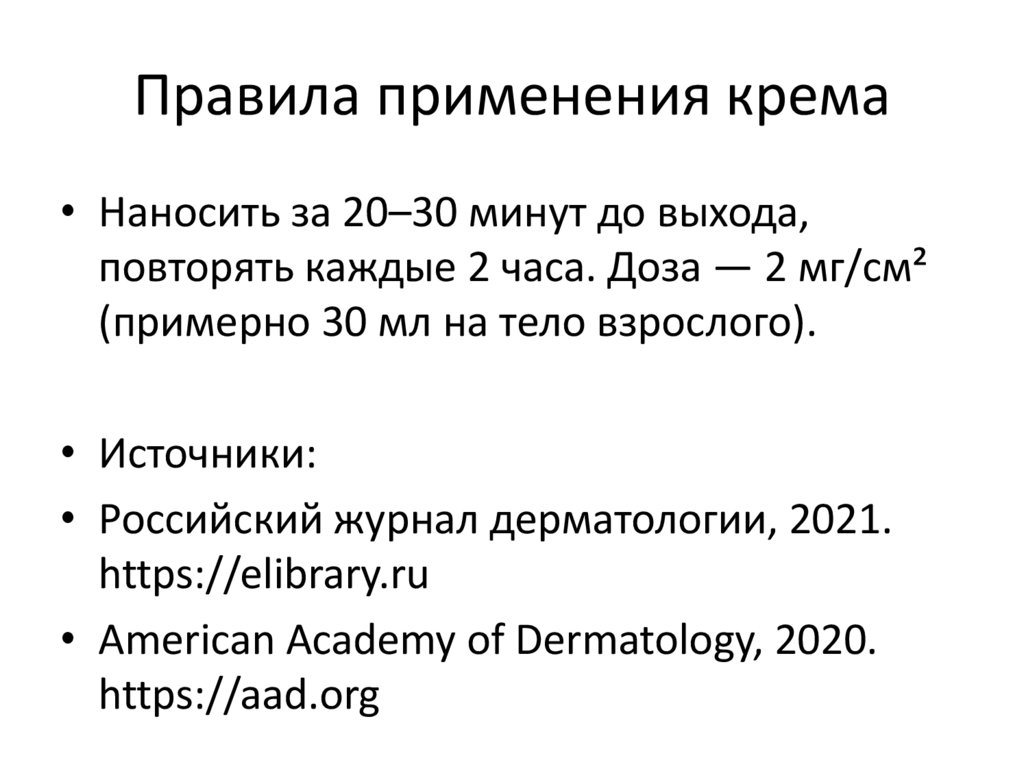 Правила применения крема• Наносить за 20–30 минут до выхода,