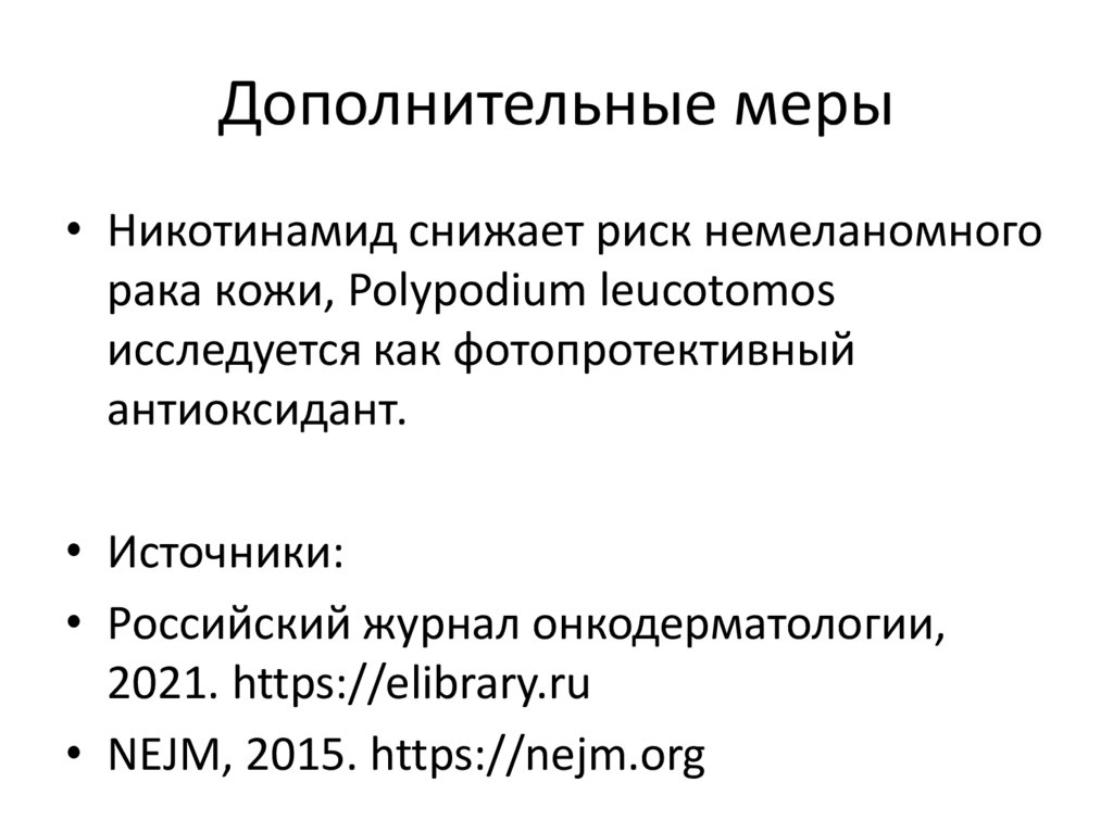 Дополнительные меры• Никотинамид снижает риск немеланомного