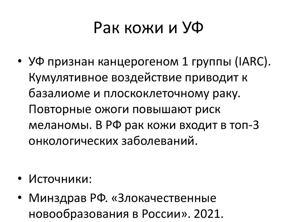 Рак кожи и УФ• УФ признан канцерогеном 1 группы (IARC).
