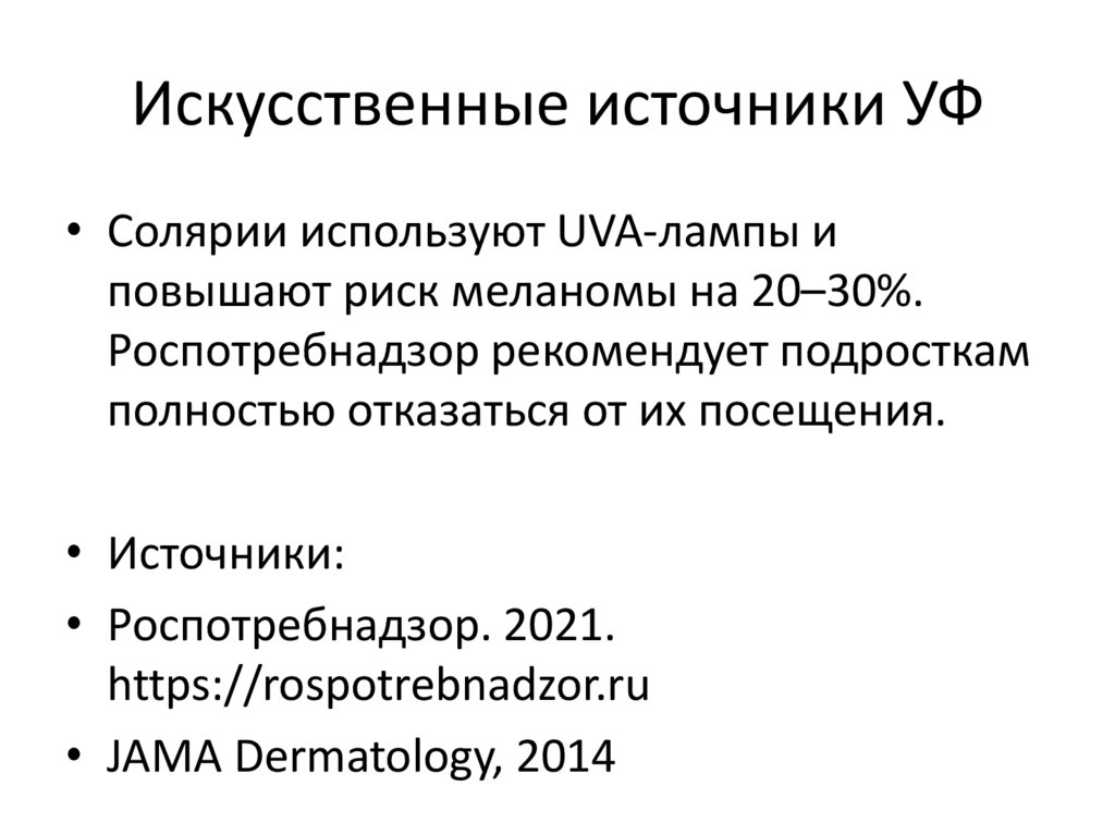 Искусственные источники УФ• Солярии используют UVA-лампы и