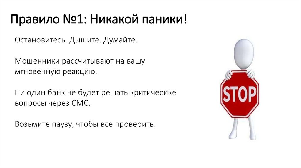 Правило №1: Никакой паники!Остановитесь. Дышите. Думайте.