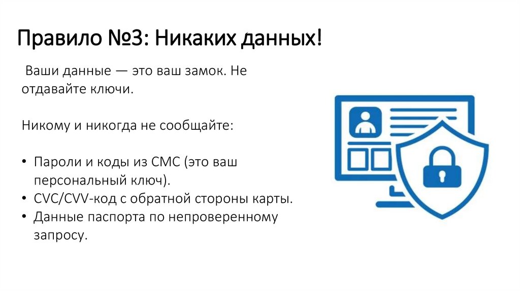 Правило №3: Никаких данных!Ваши данные — это ваш замок. Не